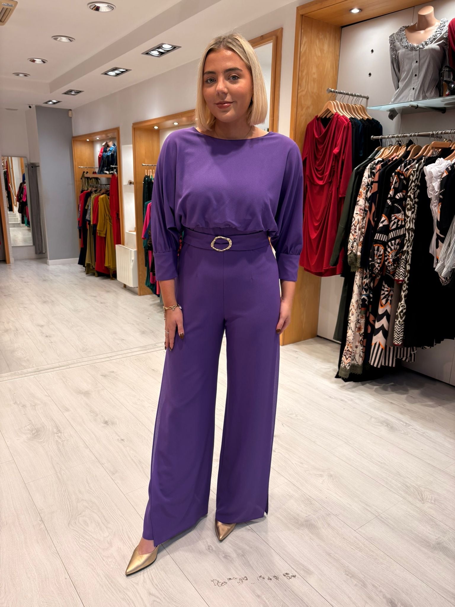 Turn heads in this stunning violet jumpsuit by Moncho Heredia, designed to combine elegance with effortless sophistication. Crafted from fluid, high-quality fabric, it drapes beautifully over the body, creating a flattering silhouette. The wide-leg cut elongates the figure, while the softly gathered bodice and cape-style sleeves add a touch of drama and movement. Our model is 5'7 ft and wears a 10 Uk / 40.